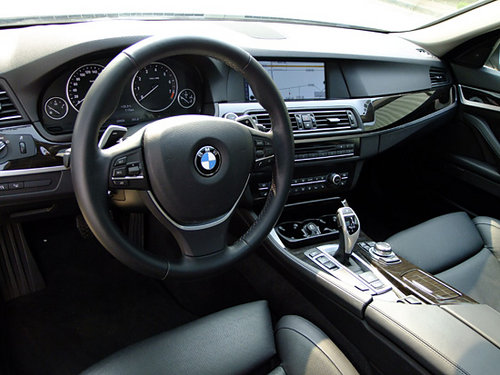 最新款5系拥有与7系类似的中控模块,新款跑车式多功能方向盘与驾驶仪表,也将音响与定速巡航等多功能按键妥善整合其中,四环仪表混搭液晶显示的行车里程、瞬间油耗与保养指示等,行政版车型还搭载了宝马7系抬头显示器,在延续宝马传统仪表设计元素下,展现科技新玩意。新型的电子系统为驾驶者带来更为便捷的多媒体信息。与6碟DVD换碟机相伴的是专业级音响系统LOGIC 7,可以提供真实的音质,红色的氛围灯可以提供放松的环境,成本不高但效果显著。