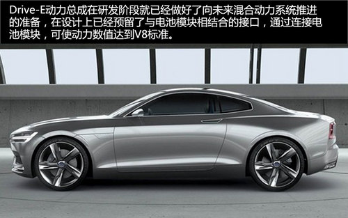 Drive-E动力总成在研发阶段就已经做好了向未来混合动力系统推进的准备,在设计上已经预留了与电池模块相结合的接口,通过连接电池模块,可使动力数值达到V8标准。相信在不久的将来,我们就能够看到搭载混合动力系统的沃尔沃车型。
