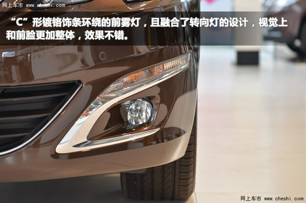 “C”形镀铬饰条环绕的前雾灯,且融合了转向灯的设计,视觉上和前脸更加整体,效果不错。