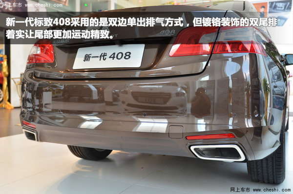 新一代标致408采用的是双边单出排气方式,但镀铬装饰的双尾排着实让尾部更加运动精致。