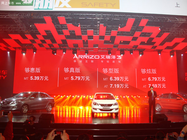 11月27日,奇瑞旗下艾瑞泽系列的第2款车——艾瑞泽3在浙江杭州正式上市。本次上市共6款新车,售价5.39至7.59万元,其中手动挡车型4款,自动挡车型2款。