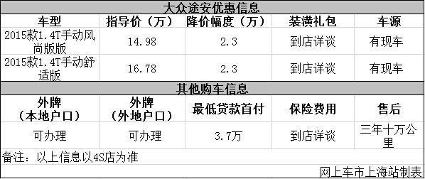 [网上车市上海站 行情]日前网上车市上海站从上海巴士永达4s店了解到,目前该店大众途安优惠出售,优惠详情参见下表: