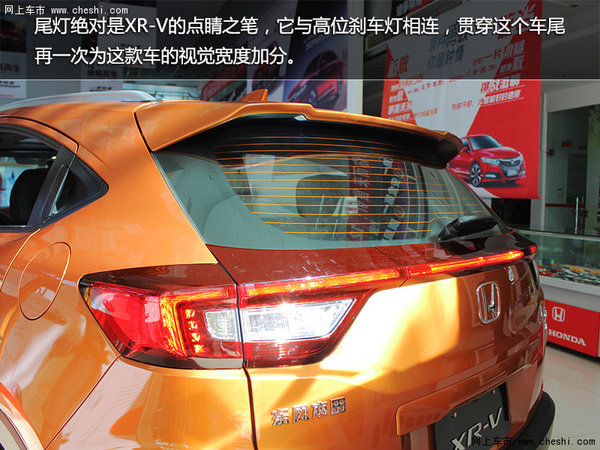 XR-V车尾造型的可以用惊艳来表示了,复杂的线条让这款的车尾有了很强烈的设计 并且两侧的C型装饰起到了增加视觉宽度的作用,尾灯的设计更是增加视觉宽度的画龙点睛之笔。