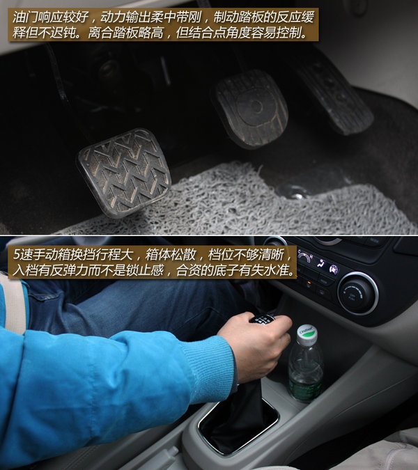 起步阶段油门响应较好,动力输出柔中带刚,制动踏板的反应也有一定韧性,不会神经质的突然反应,渐进舒缓,符合传统舒适性家用轿车该有的规矩状态。不过我真的是要提一句这令人难忘的5速手动箱,换挡行程很大,一瞬似乎是在开卡车;箱体不够紧实,档位也不够清晰,入档有反弹力而不是锁止感,松旷的感觉无法给人心理上的安全。