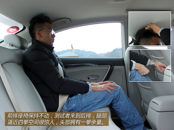 空间部分车型表现不错哦,测试者182cm个头坐进车里并不觉得十分局促。前排座椅高度降至最低,前后调整合适,偷用拥有一圈一指余量;测试者来到后排,2700mm的轴距优势明显,腿部逼近三拳的空间翘腿动作轻松实现;头部拥有近一拳的余量,长途乘坐不会觉得压抑。