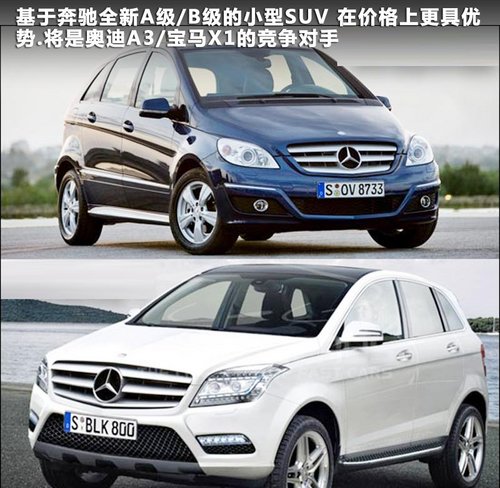 占有豪华车绝对市场优势的奔驰自然在这方面也不会落后于对手,鉴于宝马的小型SUV X1和奥迪的Q3,奔驰决定在现有的GLK之下在推出一款外形更加小巧的车型,据海外媒体报道,这款车型有可能名为“BLK”。奔驰BLK将会与下一代奔驰B-Class同平台生产,该车具有明显的SUV线条和较高的离地间隙。